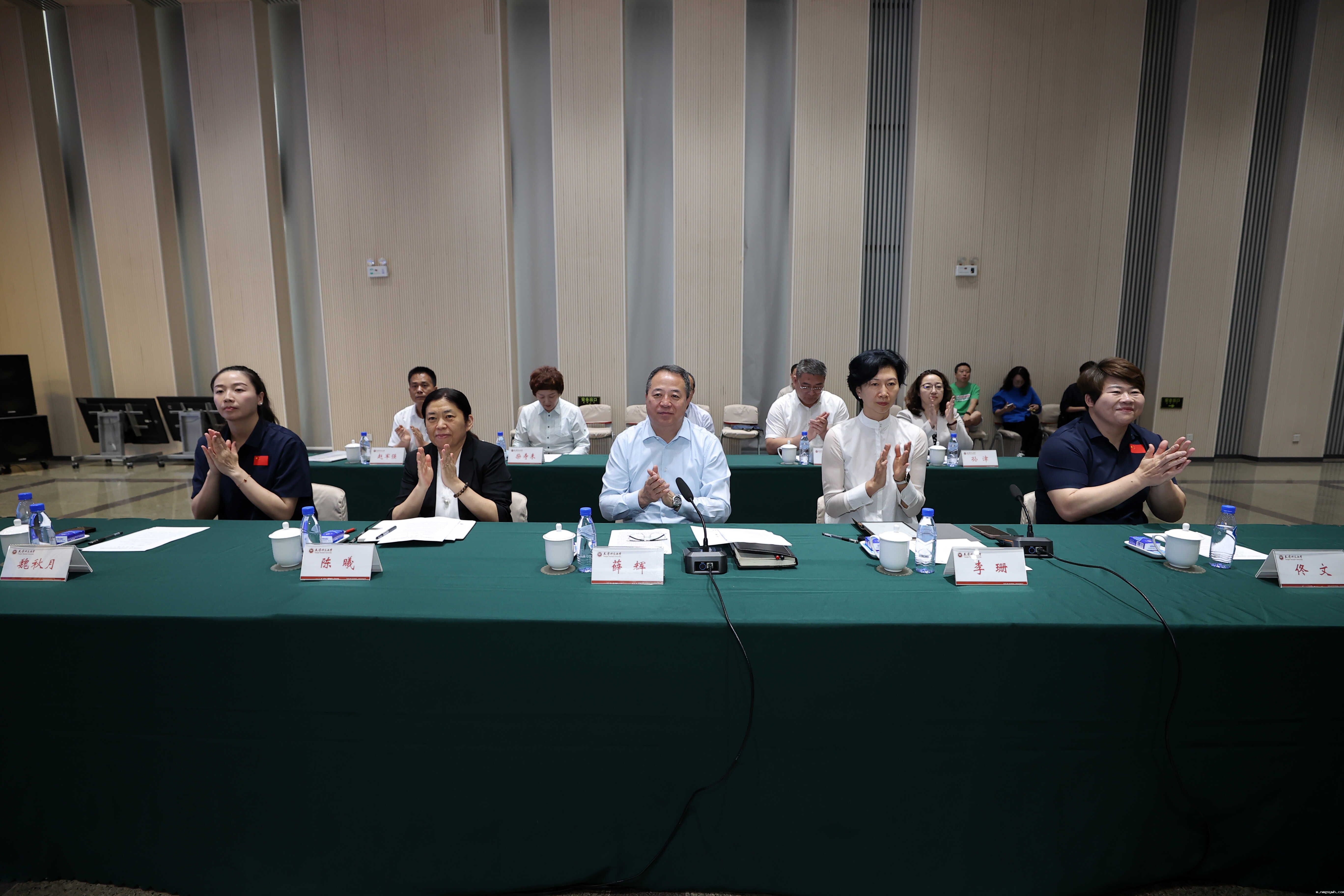 座谈会上,天津师范大学校长巩金龙为奥运冠军佟文、魏秋月颁发了“校园体育文化宣传大使”聘书。